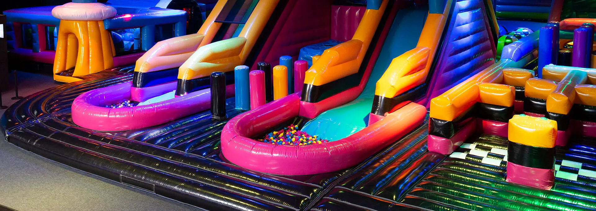 Alles is mogelijk met onze op maat gemaakte opblaasparken. Ze kunnen bijvoorbeeld een hal of schuur omtoveren tot een prachtig (tijdelijk) pretpark waar kinderen en andere bezoekers naar hartenlust kunnen ravotten: springen, kruipen, duiken, glijden. Noem maar op!