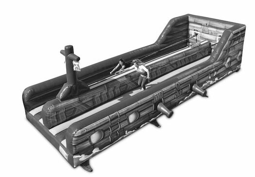 Opblaasbare Bungeerun kopen voor kinderen in thema sterkste man. Attractie voor zeskamp sport en spel dorpsfeest bij JB Inflatables