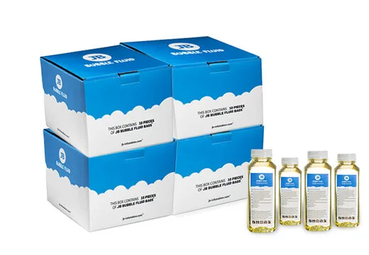 Bestel nu 4 dozen JB Bubble Vloeistof voor 299 euro. Hier zitten 40 zakjes vloeistof (á 7,48 euro per stuk) in.