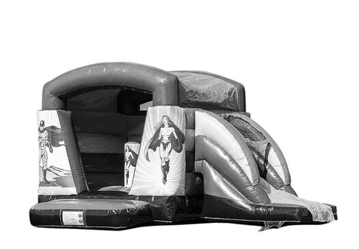 Klein overdekt opblaasbaar multiplay springkussen met glijbaan kopen in thema superhero superhelden voor kinderen. Bestel nu opblaasbare springkussens met glijbaan bij JB Inflatables Nederland