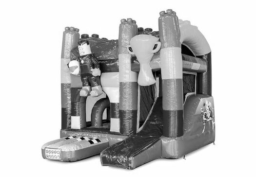 Opblaasbaar overdekt multiplay springkussen met glijbaan kopen in thema superblocks lego voor kinderen. Bestel opblaasbare springkussens online bij JB Inflatables Nederland