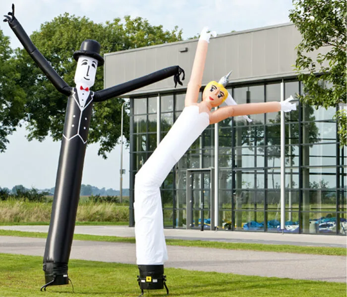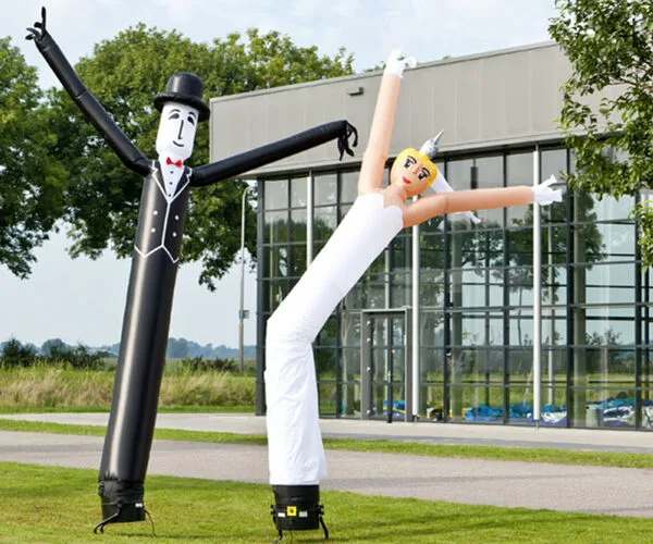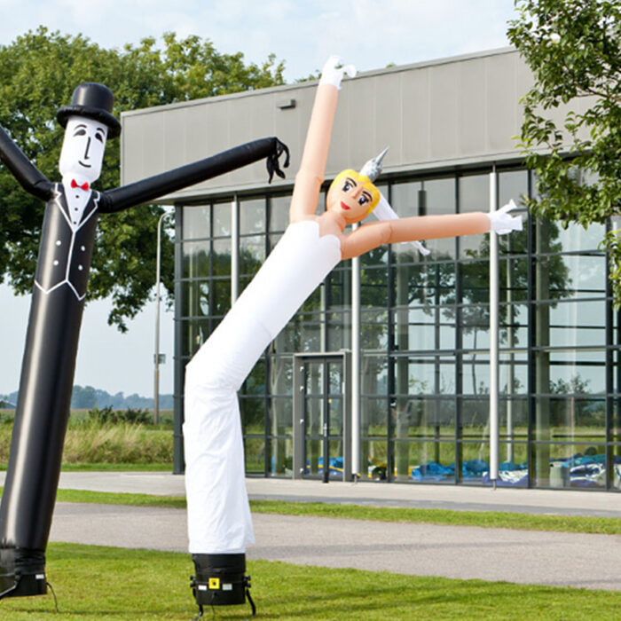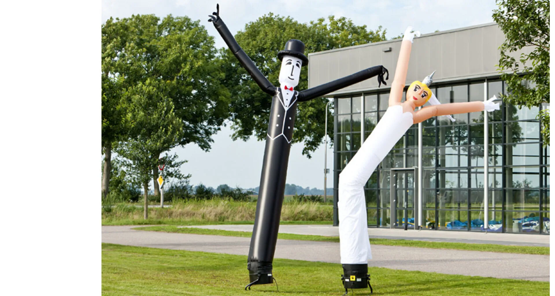 Wil jij een prachtige opblaascreatie op maat laten maken voor je huwelijksfeest? Daar zegt JB natuurlijk volmondig ja tegen! Moet je zien hoe gelukkig deze getrouwde skydancers eruitzien.