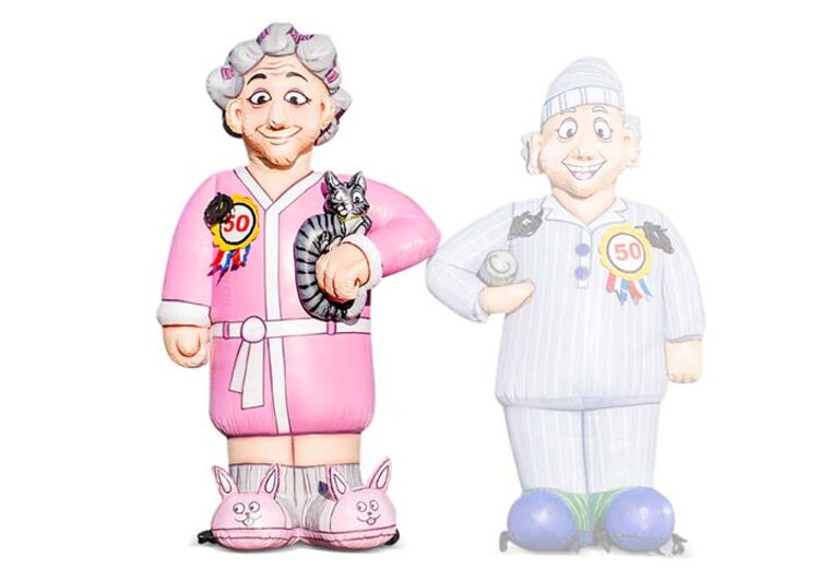 Als iemand 50 jaar wordt, dan heeft hij of zij als het goed is ruim 15 jaar geslapen! Is de jarige in kwestie – familielid, vriend/vriendin, sportmaat of collega van jouw klant – een dromer of een slaapkop? Met deze Abraham of Sarah op de inrit of in de tuin van de jarige is het in ieder geval duidelijk: hier is iemand die 50 jaar wordt of is geworden. Passanten moeten vast (minstens) even glimlachen als ze de megagrote (4 meter!) pop zien staan, feestvierders hebben in ieder geval gespreksstof tijdens het feest en de jarige zelf? Die kan er een nachtje over slapen wat zijn familielid, vriend, vriendin of collega nu precies bedoelt.