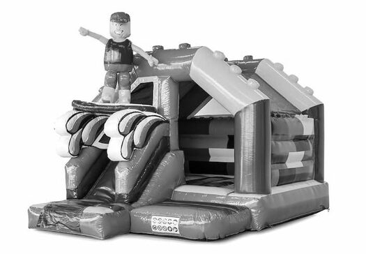 Opblaasbaar overdekt multiplay springkasteel met glijbaan kopen in thema superblocks lego voor kinderen. Bestel opblaasbare springkastelen online bij JB Inflatables Nederland