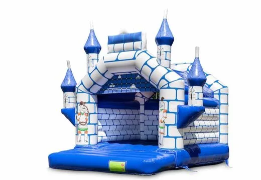 Mini overdekt springkussen in kasteel thema in een kleuren combinatie van blauw en wit te koop. Koop springkussens online bij JB Inflatables Nederland