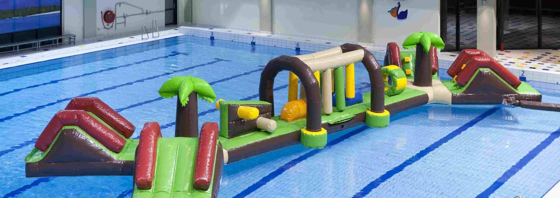 Opblaasbare Zwembadspelen Kopen en Huren. Opblaasbare waterstormbanen voor in het zwembad en voor buiten water van JB Inflatables